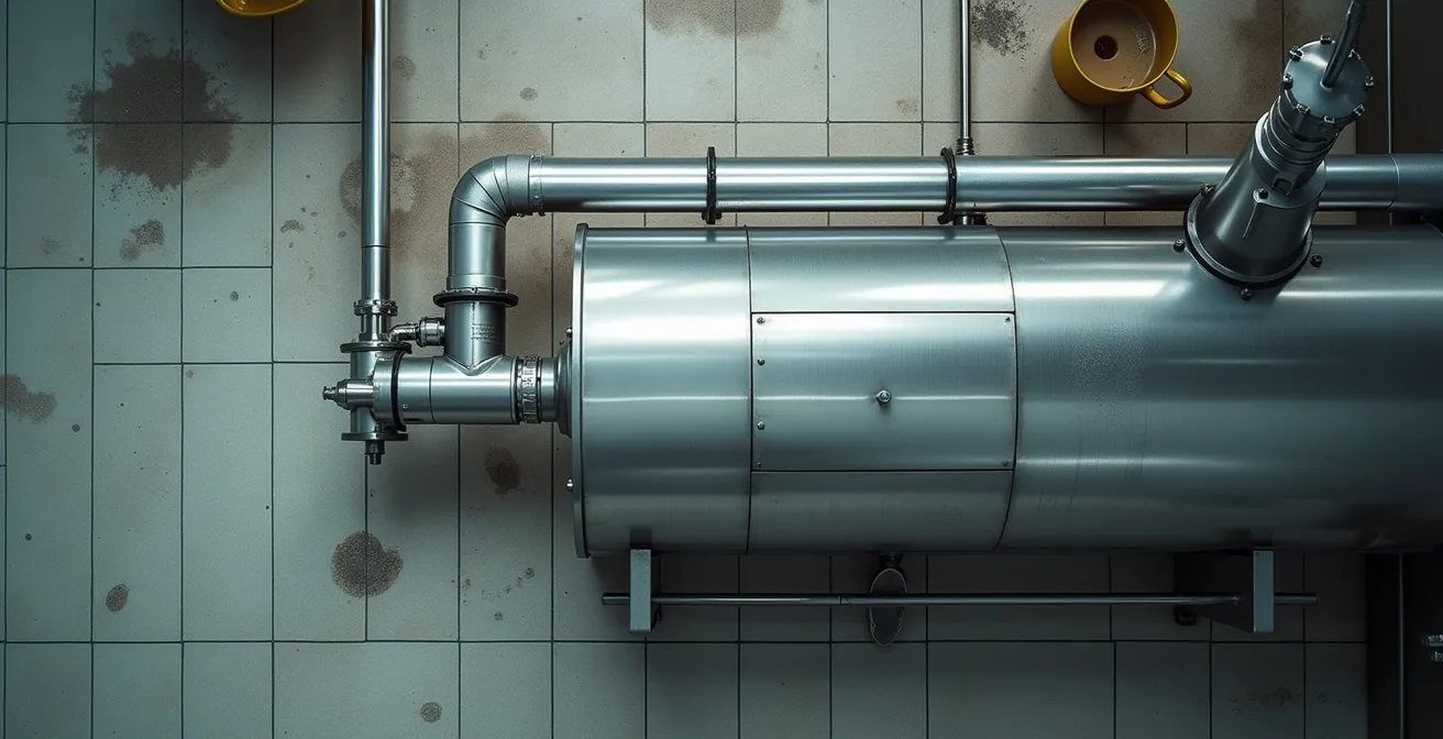 En tant qu’inspecteur en assainissement des eaux pour la Ville, je ne compte plus le nombre de visages déconfits de restaurateurs que j’ai vus, debout dans une cuisine paralysée par un refoulement graisseux. Le scénario est toujours le même : une odeur nauséabonde, des drains qui gargouillent et une activité commerciale à l’arrêt complet un vendredi soir. La plupart pensent qu’une vidange « de temps en temps » suffit. C’est une erreur coûteuse. La gestion de votre intercepteur de graisse n’est pas une simple case à cocher sur une liste de tâches. C’est un système organique directement lié à la nature de votre menu, aux habitudes de votre personnel et à l’âge de votre bâtiment.